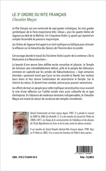 Le 3ème ordre du rite français – Chevalier maçon – Gérard Contremoulin