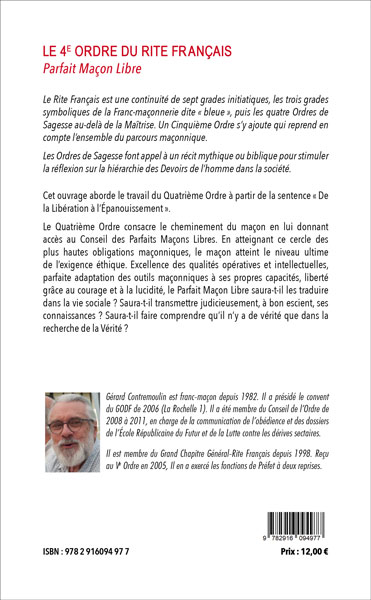 Le 4ème ordre du rite français – Parfait Maçon libre – Gérard Contremoulin