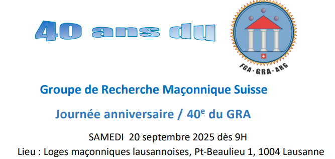 En début d’après-midi, après le repas convivial, la conférence sur «La presse et la Franc-Maçonnerie : un dialogue conflictuel» conclura une journée qui, nous l’espérons, aura su se faire l’écho des activités du GRA pour en célébrer la juste place dans le concert des organismes maçonniques.