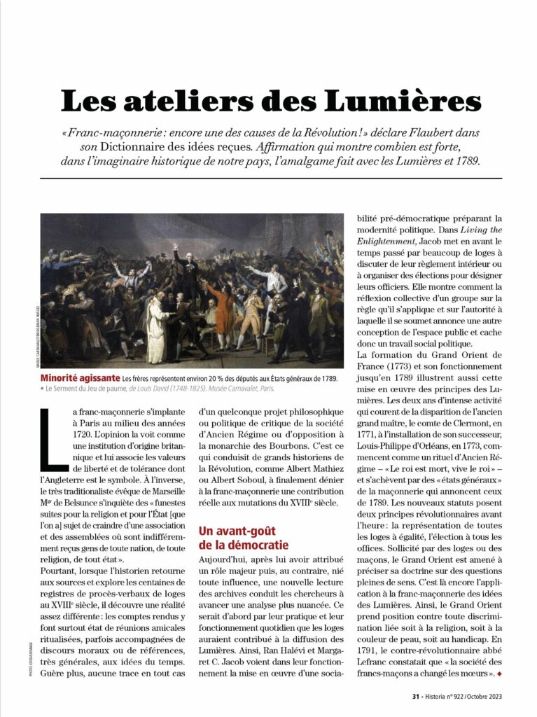 Source : Historia N° 922 – Octobre 2023 – Trois siècles de franc-maçonnerie