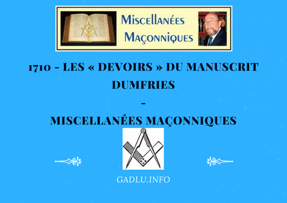 LES « DEVOIRS » DU MANUSCRIT DUMFRIES – MISCELLANÉES MAÇONNIQUES
