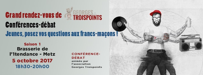 Les Grands Rendez-Vous de Georges : àl’initiative locale de l’Association Georges Trois points de Metz et la Fédération Française le Droit Humain, les francs- maçons rencontrent les jeunes le 5 octobre 2017 et le 2 novembre 2017 à Metz : une première !