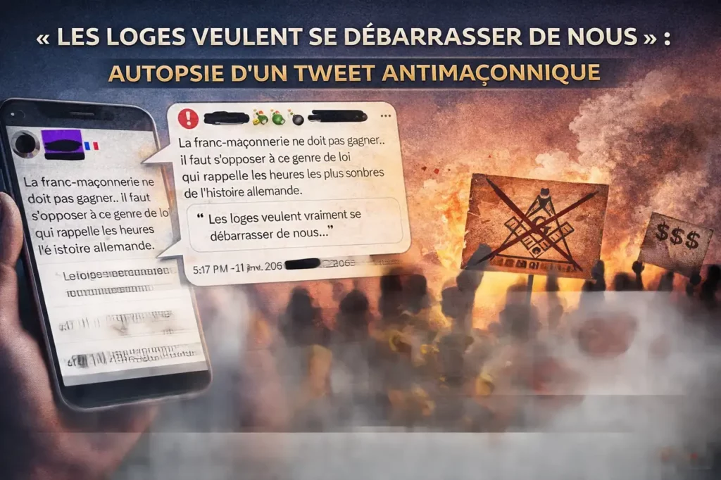 Ce court texte mérite d’être lu non pas comme une information, mais comme un objet de rhétorique. Il condense, en quelques lignes, plusieurs mécanismes classiques du discours antimaçonnique et complotiste.