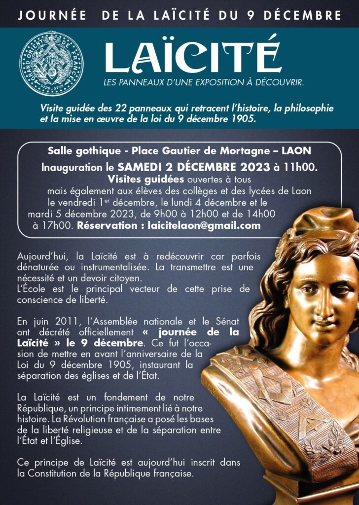 Exposition « Laïcité », organisée par les deux Loges maçonniques du Grand Orient de France de Laon, avec le soutien de la Mairie.