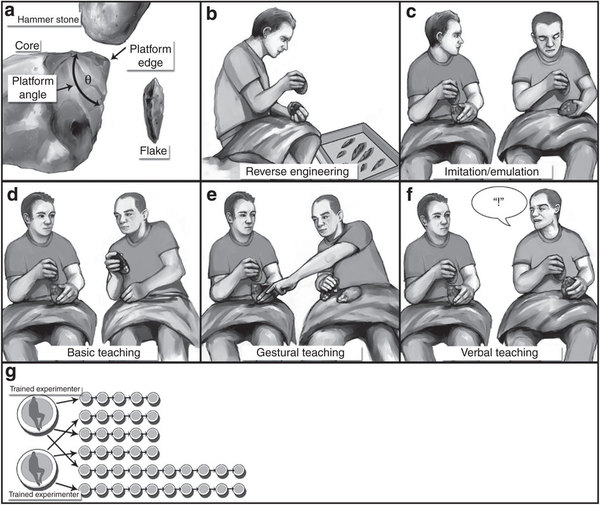Il y a près de deux millions d’années, dans la savane africaine, les ancêtres de l’espèce humaine ne disposaient pas de Youtube ni de fiches bricolage pour leur apprendre à fabriquer des outils… La nécessité de transmettre le savoir-faire nécessaire pour tailler efficacement la pierre aurait donc été à l’origine du premier langage. C’est en tout cas la thèse défendue dans une étude réalisée par une équipe internationale et qui vient d’être publiée dans Nature Communications.