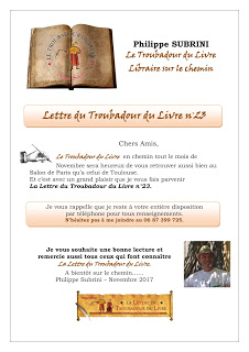 TÉLÉCHARGER : LA LETTRE DU TROUBADOUR DU LIVRE – N° 23 – NOVEMBRE 2017