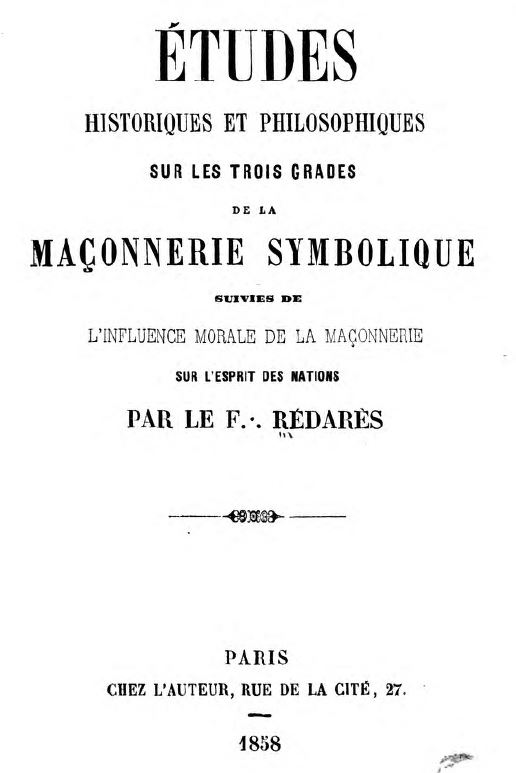 Livre maçonnique gratuit du mercredi : Etudes historiques et philosophiques sur les trois grades de la Maçonnerie symbolique de Rédarès Jean-M.-M.
