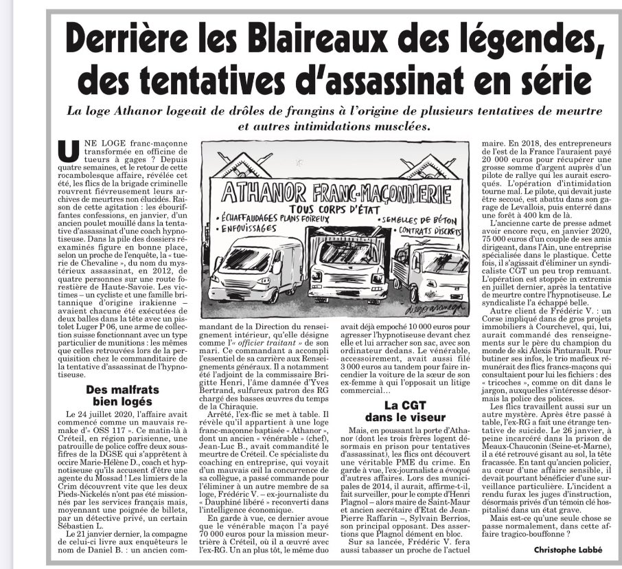 Le Canard Enchaîné du 24 février 2021, revient sur « l’affaire des barbouzes et des franc-maçons » dans un article satiriquement intitulé