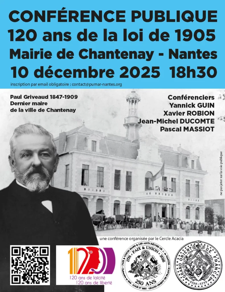 À cette occasion, le Cercle Acacia et le Grand Orient de France organisent une conférence publique gratuite, ouverte à toutes et à tous, afin de revisiter l’héritage de cette loi fondatrice et de rendre hommage à une figure trop souvent oubliée de l’histoire municipale : Paul Griveaud (1747-1909), dernier maire de la ville de Châtenay.