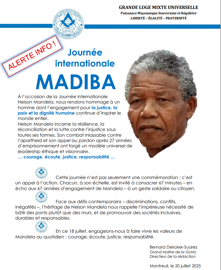 Communiqué de la Grande Loge Mixte Universelle (GLMU) sur la Journée internationale Madiba :