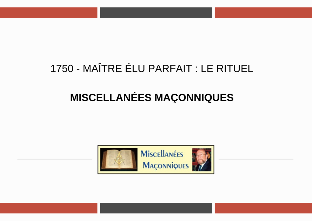 1750 – Maître Élu Parfait : le rituel