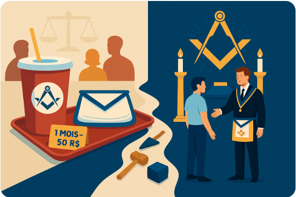À ce moment-là, j’ai vu l’étonnement sur le visage du frère, qui s’est immédiatement exclamé que le montant informé était exorbitant, peu pratique et que le processus d’initiation était très bureaucratique. En entendant de tels commentaires, je me suis demandé comment il était possible de faire la même chose avec moins de temps et de ressources… Je n’ai pas pu contenir ma curiosité et j’ai demandé : – Et comment ça se passe dans votre magasin ? – Le frère m’a alors répondu que son Obédience renonçait à de nombreuses conditions requises pour l’Initiation, en plus d’exonérer les candidats des frais de placet . De ce fait, votre boutique peut effectuer l’intégralité du processus d’initiation en un mois seulement et ne facture que 50,00 R$ au candidat.