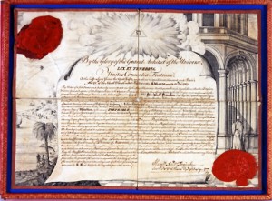 Une semaine environ après la date mentionnée ci-dessus, Monsieur Francken leur conféra les deux premiers degrés de la Maçonnerie Moderne ou Renouvelée et leur suggéra, s’ils décidaient d’ériger une Loge de Perfection à Albany, de nommer William Gamble Maître pro tempore, jusqu’à ce que Sir William Johnson [personnalité coloniale] ait éventuellement accepté cet office.