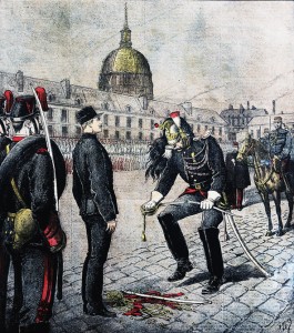 • 22 décembre 1894. – Traduit en cour martiale pour avoir prétendument livré à l’Allemagne des documents secrets, le capitaine d’artillerie Alfred Dreyfus (1859-1935), d’origine alsacienne et juive, est condamné pour trahison à la dégradation et à la déportation « perpétuelle » à l’île du Diable (Guyane). Le responsable des fuites reprochées à l’ancien polytechnicien est en fait un certain commandant Ferdinand Walsin Esterházy – qui ne sera jamais vraiment inquiété… Le 19 janvier 1895, le frère Jules Gabriel, membre du Grand Orient de France, affirme dans les colonnes du Petit Méridonial de Marseille, dont il est le directeur politique, que « le capitaine Dreyfus a été justement et légalement condamné ».