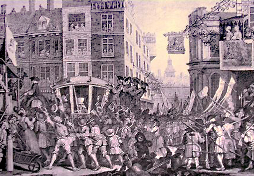 Le roi Georges arriva à Londres, dans la plus grande magnificence, le 20 septembre 1714, après qu’ait pris fin la rébellion. En l’année 1716, les quelques Loges de Londres [encore en activité], se considérant abandonnées par Sir Christopher Wren [supposé grand maître depuis le grand incendie de 1666], manifestèrent l’intention de constituer, sous la protection d’un Grand Maître, un centre d’union et d’harmonie.