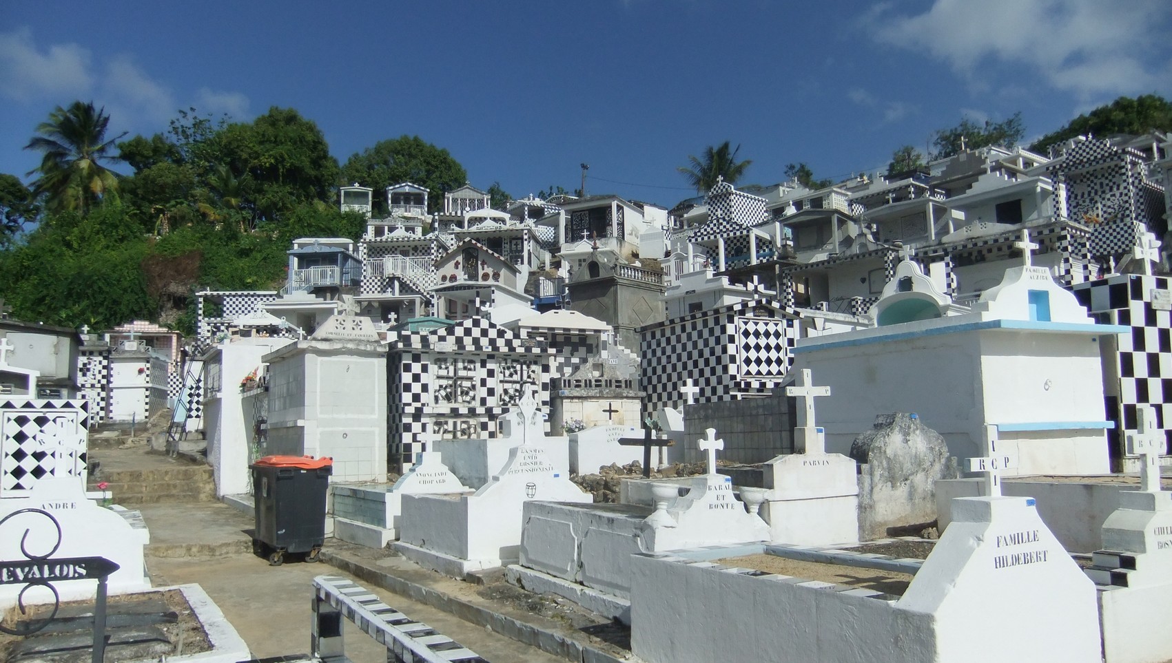 Mosaïques dans un cimetière de Guadeloupe Web maçonnique | 26 juillet 2014 | 0 | by A.S. Merci à Jean-Luc et Rémy pour ces 3 très belles photographies dans un cimetière en Guadeloupe-classé -…de belles mosaïques noires et blanches comme des pavés symboliques…hasard de l’art funéraire local