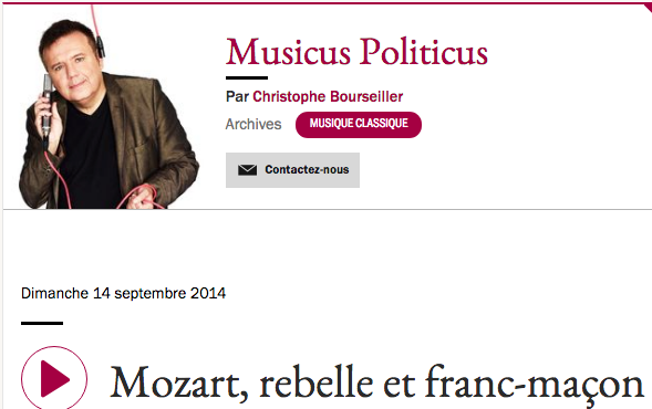 Christophe Bourseiller nous présentait l’émission « Musicus Politicus » sur France Culture le 14 septembre 2014, qui était consacrée à :