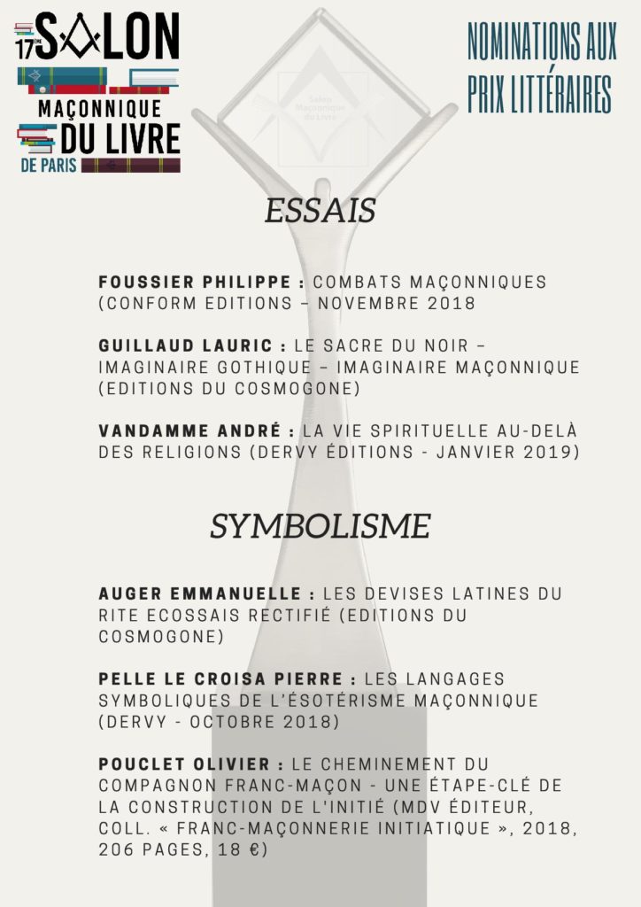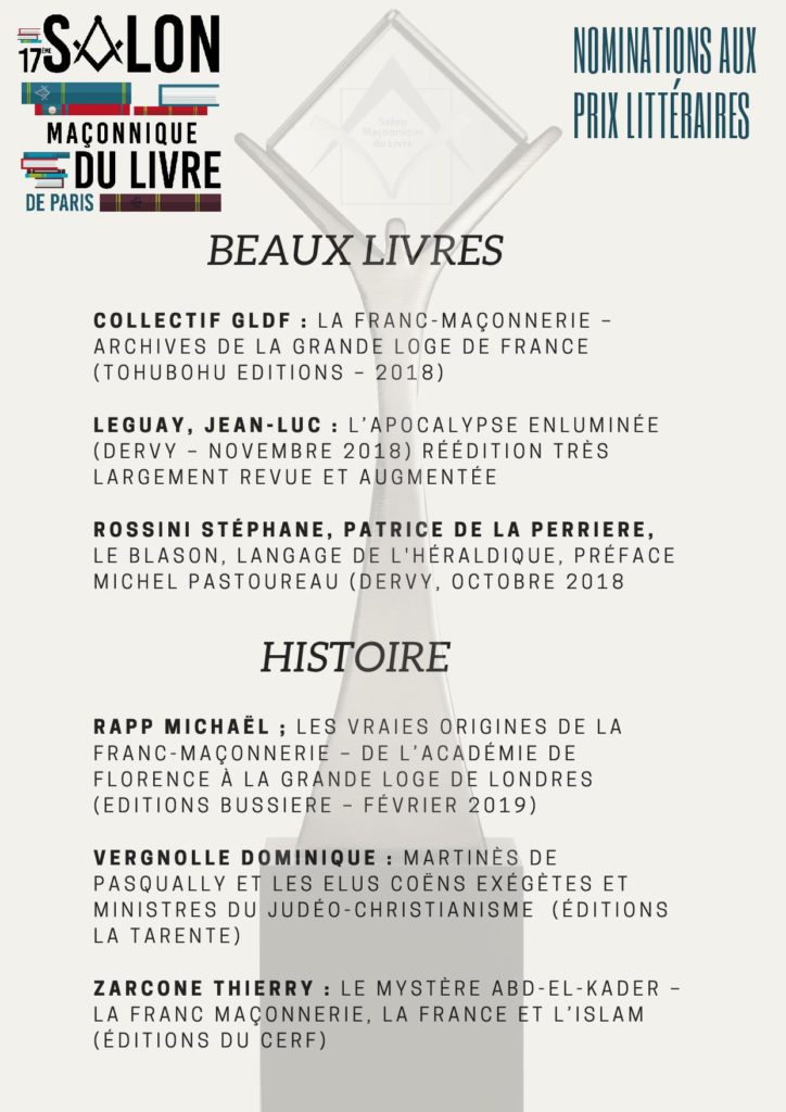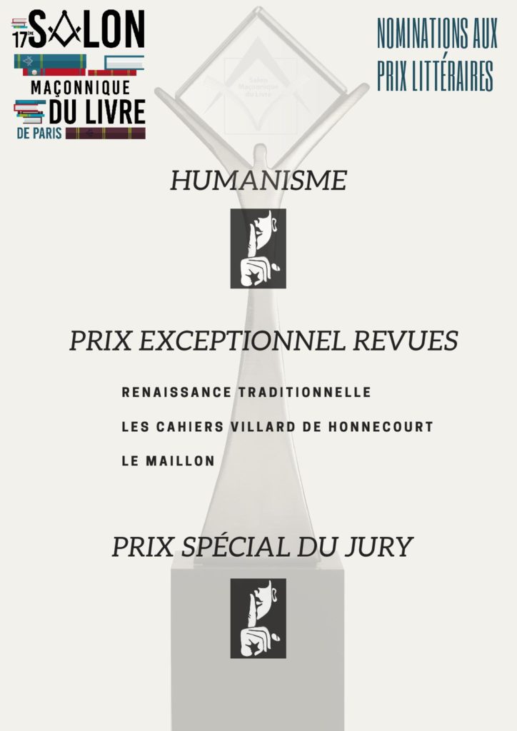 NOMINATIONS AUX PRIX LITTÉRAIRES DU 17° SALON MAÇONNIQUE DU LIVRE DE PARIS