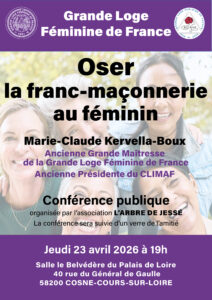 La franc-maçonnerie féminine s’affirme aujourd’hui comme un espace de réflexion, d’engagement et de quête de sens ouvert sur la société. Le 23 avril à 19h, la ville de Cosne-Cours-sur-Loire accueillera une conférence publique intitulée « Oser la franc-maçonnerie au féminin », organisée par l’association L’Arbre de Jessé.