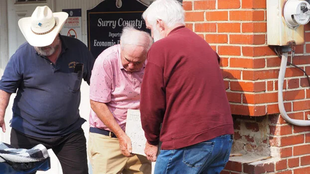 L’ancienne caserne de pompiers de la ville de Surry, sur Church Street, abrite une pierre angulaire gravée des mots « Jefferson Lodge No. 65, AF et AM, 1801-1945 » et du symbole de l’équerre et du compas des francs-maçons, une société mondiale et vieille de plusieurs siècles composée d’hommes dont les rangs comprenaient autrefois George Washington, Benjamin Franklin et d’autres pères fondateurs des États-Unis. Le bloc de granit est resté intact depuis la construction de la caserne des pompiers en 1945, dissimulant à l’intérieur une boîte en plastique qui a été retirée pour la première fois en 80 ans le 31 mai. Les francs-maçons de la Loge Jefferson ignorent encore ce qu’elle contient. La boîte a été envoyée à la Grande Loge de Richmond pour être ouverte au cas où elle contiendrait des objets datant d’avant 1945.