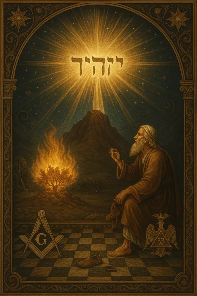Ici, le Grand Architecte dit à Moïse que s’il est interrogé, il doit répondre que « Je suis » l’a envoyé pour libérer les Hébreux. Il lui demande également de le nommer Adonai, c’est-à-dire « Seigneur ». Mais à aucun moment, il ne lui révèle son nom véritable, de peur qu’il ne le transmette au peuple. Cette révélation intervient plus tard, après que Moïse soit allé en Égypte et que les Hébreux aient été maltraités. On retrouve cela dans le chapitre 6 de l’Exode, versets 1 à 8 :