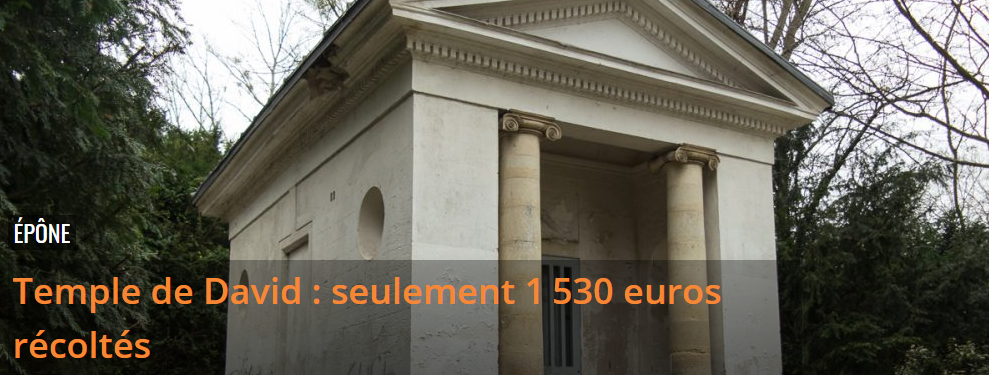 La Gazette des Yvelines relate qu’il y a un an, la municipalité d’Epône – 78680, en collaboration avec la Fondation du patrimoine, lançait une souscription afin de financer la restauration du temple de David, plus ancien temple maçonnique de France, construit en 1785, afin de diminuer la part communale des travaux, estimés à 350 000 euros.