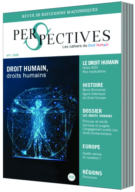 PERSPECTIVES est la nouvelle revue des Francs-Maçons de la Fédération Française du DROIT HUMAIN. Cette nouvelle revue qui sortira en septembre 2018 entend refléter la diversité des convictions qui font la richesse d’une obédience construite à sa création sur la mixité et l’internationalité.