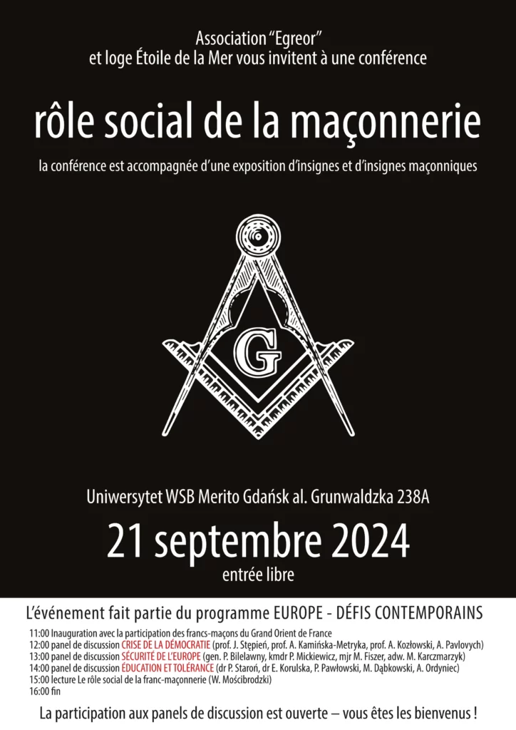 Conférence publique organisée par l’association “Egreor” et Loge Étoile de la Mer à l’Uniwersytet WSB Merito Gdańsk.