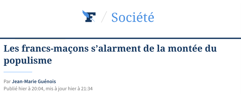 Le Figaro du 19 novembre 2021 publié un article sur la montée du populisme qui inquiètent les francs-maçons, en quête de solutions !