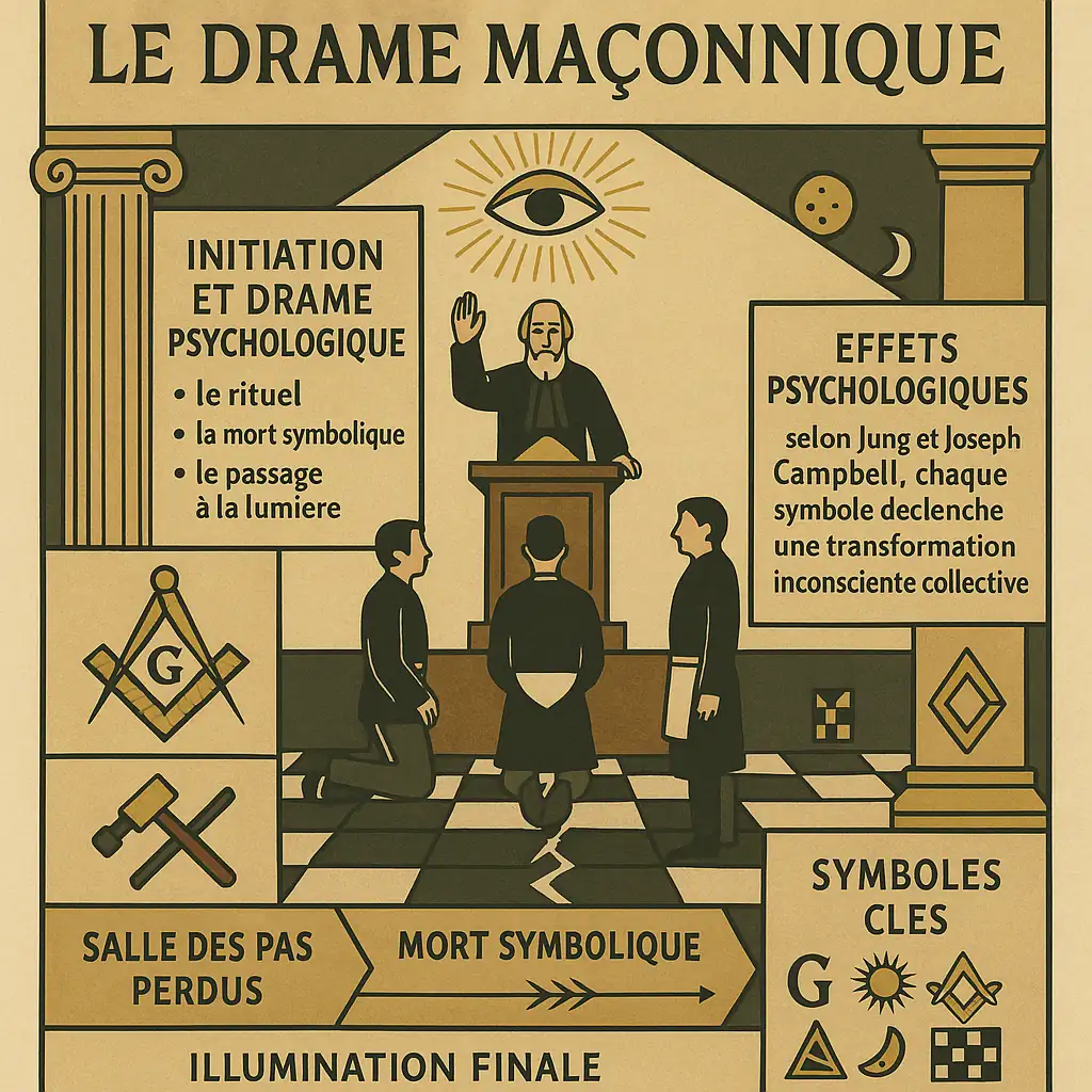Mais en franc-maçonnerie, on retrouve l’exposition d’ objets significatifs, les symboles , la gestion de la lumière et de ce qui est visible à différents moments, sans parler des rôles et des interprétations variés. Cela semble être une part importante de l’expérience. Pour moi, c’est le signe que la façon dont les initiés vivent cette expérience est bien pensée et gérée.