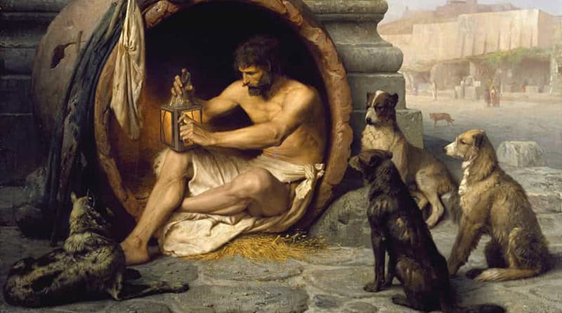 L’image qui illustre cet article est celle du philosophe Diogène de Sinope, connu sous le nom de « Le Cynique », dont l’étymologie vient du grec kunikós qui concerne le chien. Diogène de Sinope (grec ancien : Διογένης ὁ Σινωπεύς ; Sinope, 404 ou 412 avant JC – Corinthe, vers 323 avant JC), était un philosophe de la Grèce antique.