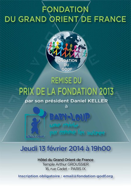 Le jeudi 13 février 2014 la Fondation du Grand Orient de France remettra son prix 2013 à la crèche Baby-Loup.