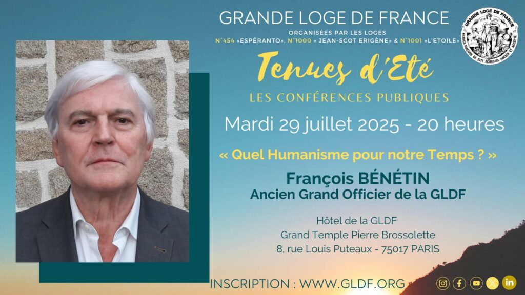 Pour mieux comprendre la démarche initiatique en Grande Loge de France et ses valeurs, nous vous proposons, cet été, trois rendez-vous avec des conférenciers éminents de la GLDF.