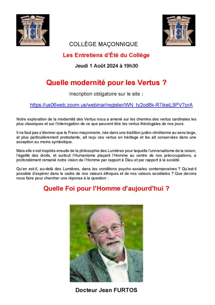 QUELLE FOI POUR L’HOMME D’AUJOURD’HUI ? – COLLEGE MACONNIQUE
