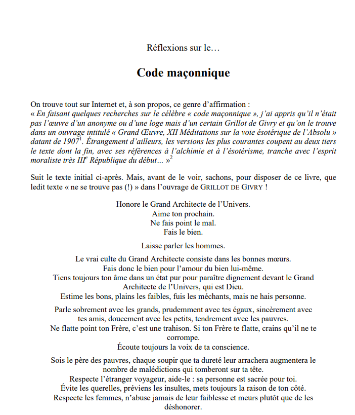 REFLEXIONS SUR LE…CODE MACONNIQUE