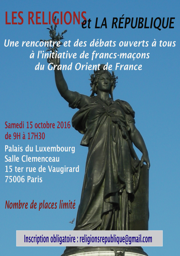 Paris – Samedi 15 octobre 2016 de 09H30 à 17 heures, le Grand Orient de France (GODF) organise une rencontre sur le thème « Les religions et la République » au Palais du Luxembourg.