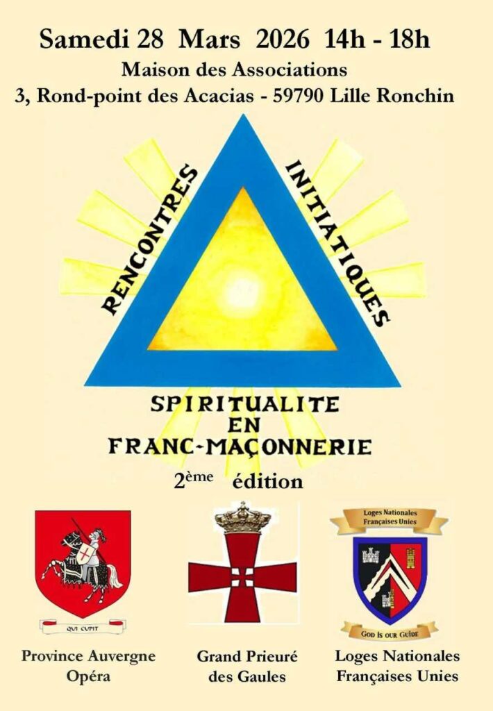 Organisée à la Maison des Associations de Ronchin, cette demi-journée réunira plusieurs intervenants reconnus du monde maçonnique pour aborder les grandes questions liées à l’initiation, au sens de la vie et à la place de la spiritualité dans la démarche maçonnique contemporaine.