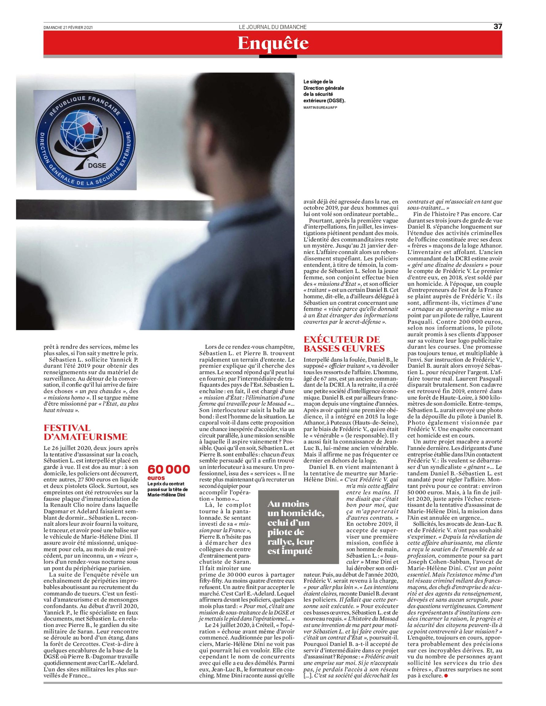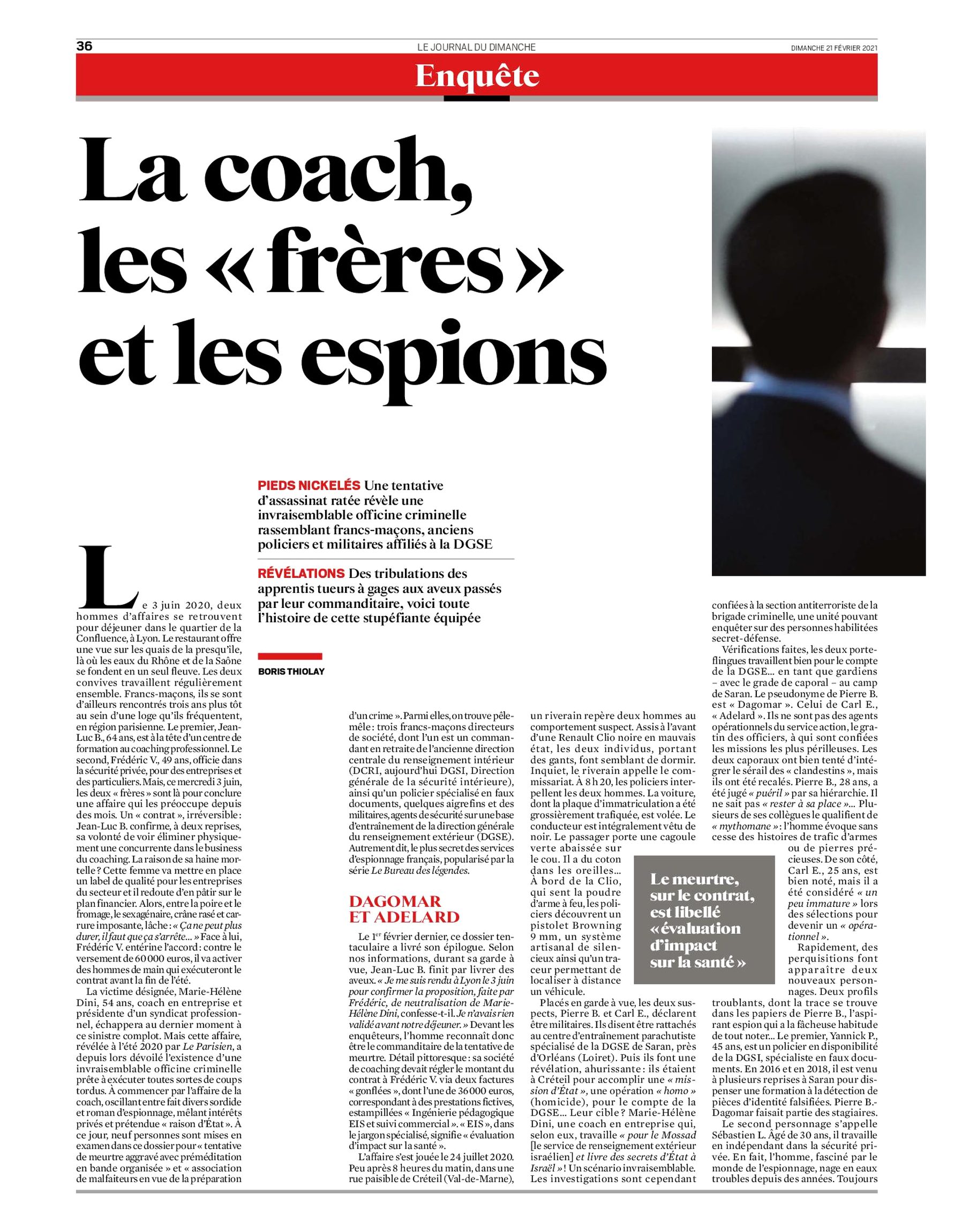 L’affaire que nous nommerons « affaire des barbouzes et des francs-maçons » qui a défrayé la chronique des faits divers ces dernières semaines fait l’objet d’une enquête et d’une rétrospective dans le Journal Du Dimanche (JDD) du 21 février 2021.
