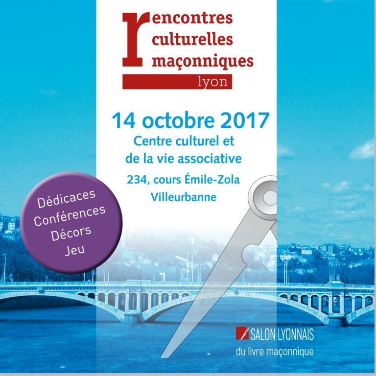 Le Salon lyonnais du livre maçonnique se tiendra le 14 octobre 2017 au Centre culturel et de la vie associative (CCVA), 234 cours Émile Zola à Villeurbanne (Salon inter-obédientiel sous les auspices du GODF)