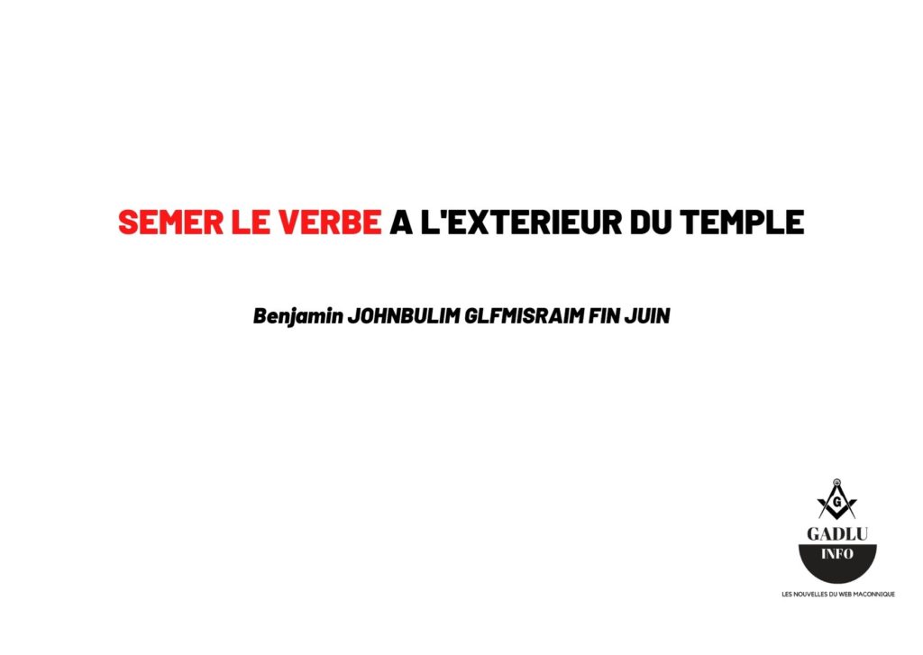 J’exhorte alors tous les francs-maçons qui me lisent, à se lever, se mettre en marche, et profiter du mois de juillet et d’août pour aller Semer le verbe autour d’eux, parmi leurs amis, dans leur famille, pour montrer les bienfaits de la franc- maçonnerie que l’on ne cesse de cacher.
