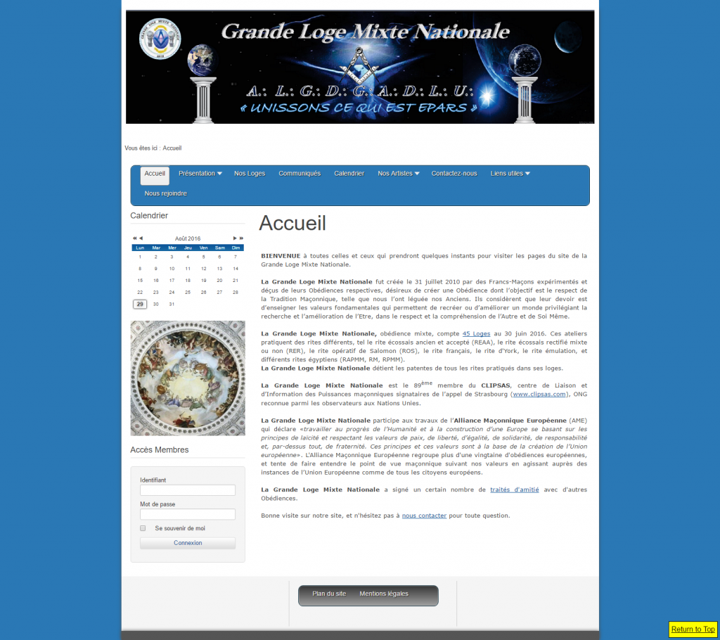 La plupart des rubrique « habituelles » sont disponibles (présentation de l’obédience et des loges, communiqués, contacts, liens utiles, etc…)
