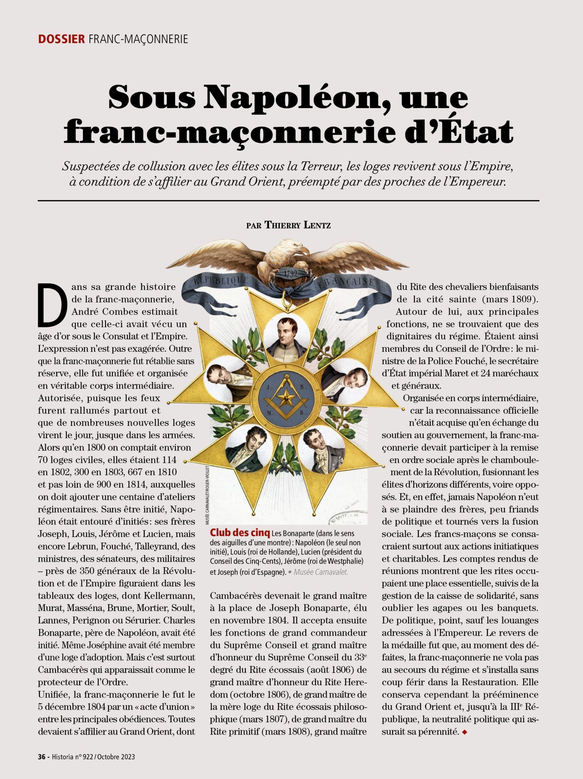 Source : Historia N° 922 – Octobre 2023 – Trois siècles de franc-maçonnerie