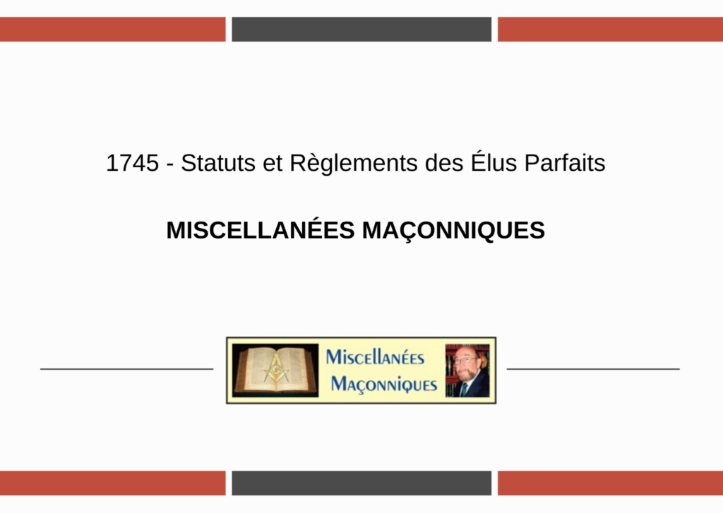 Extrait des premiers « Statuts et Règlements » de la Loge de Saint-Jean de Jérusalem des Élus Parfaits :