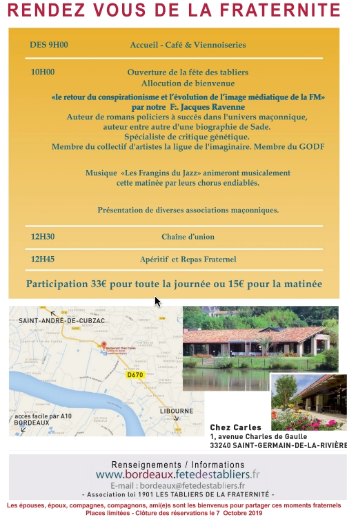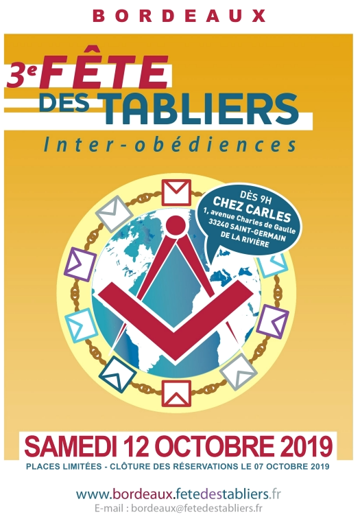 Pour la troisième édition des Tabliers de la Fraternité de Bordeaux nous vous proposons de vous retrouver avec vos familles et amis profanes pour partager ensemble ce grand moment fraternel.