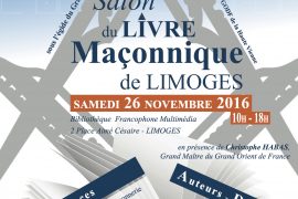 Limoges – 3ème Salon du Livre Maçonnique de Limoges le samedi 26 novembre 2016 de 10h – 18h organisé sous l’égide du Grand Orient de France (GODF) et par les Loges du GODF de la Haute Vienne auteurs – dédicaces – conférences…