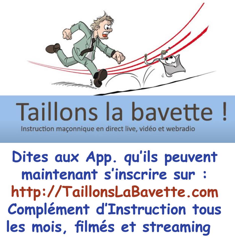 Bienvenue sur « Taillons la bavette ! », service d’instruction gratuit en ligne (pour Francs-maçons seulement), consacré aux 3 premiers degrés initiatiques.