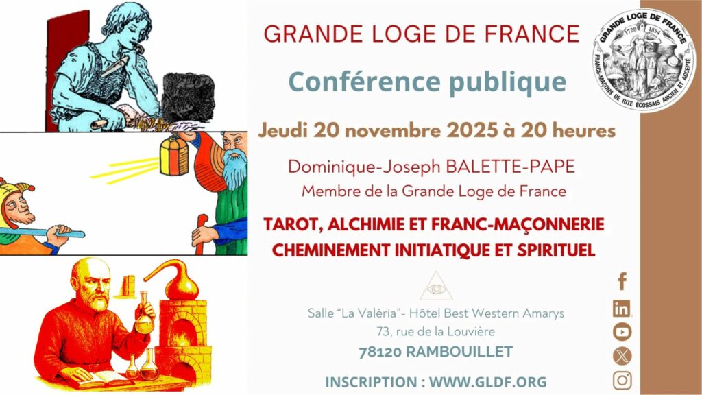 La Grande Loge de France propose une conférence publique à Rambouillet, le jeudi 20 novembre 2025 à 20h00, animée par Dominique-Joseph Balette-Pape, membre de la Grande Loge de France, sur le thème :
