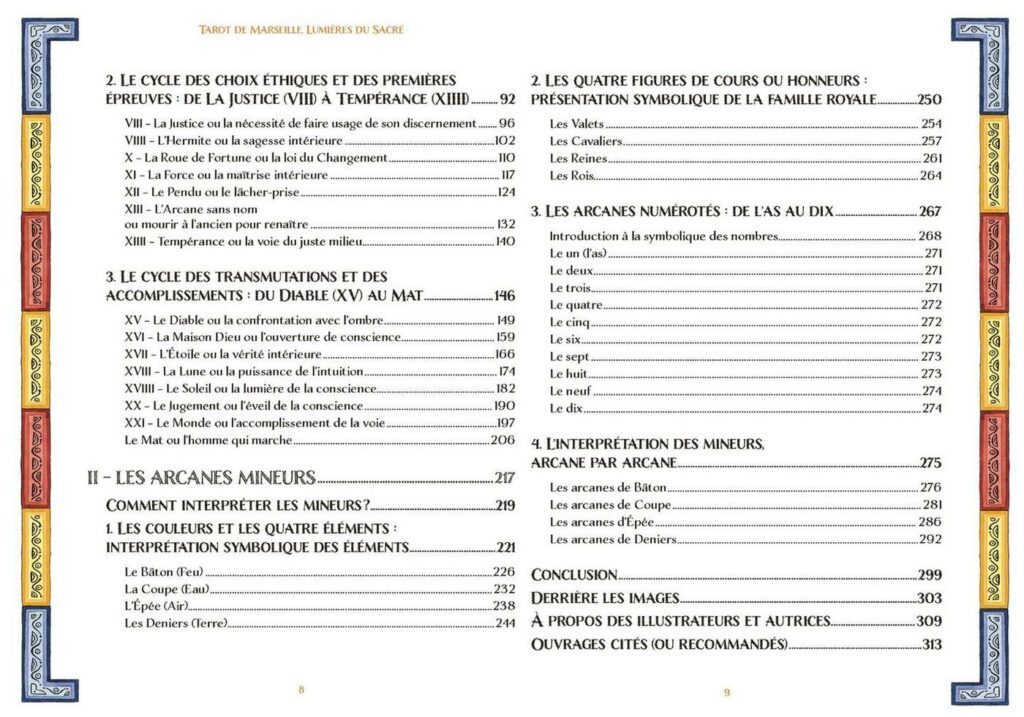 Fruit d’une collaboration fructueuse entre une chercheuse, un artiste plasticien et une artiste peintre, le coffret que vous tenez entre vos mains est à plus d’un titre exceptionnel. À l’image des précieux manuscrits médiévaux, ce tarot de Marseille Lumières du Sacré propose de magnifiques cartes enluminées aux traits minutieux et aux dorures raffinées.