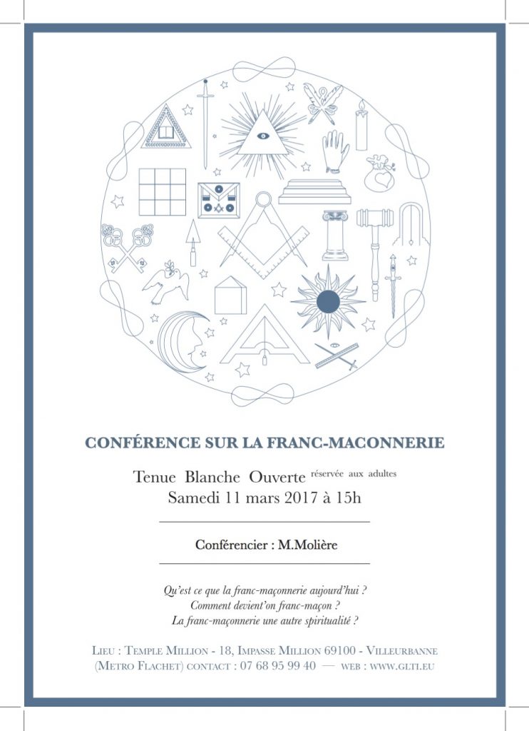 Villeurbanne – Samedi 11 mars 2017 à 15 heures, Tenue Blanche Ouverte (TBO) de la Grande Loge Traditionnelle Initiatique (GLTI) avec Monique Molière qui propose une plongée aux origines de la Franc-Maçonnerie, du Rite de Memphis-Misraïm et scrute l’intérêt d’un tel engagement aujourd’hui.