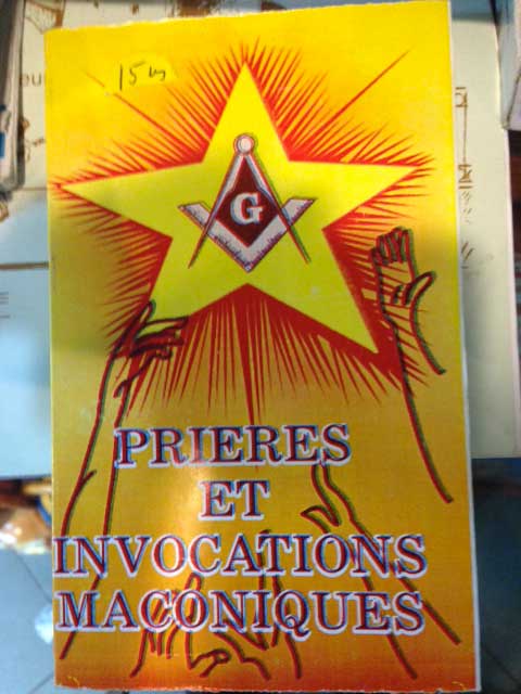 Jean F. nous a fait parvenir la photographie d’ouvrage vu à l’aéroport de Port au Prince à Haïti « PRIERES ET INVOCATIONS MACONIQUE » au… prix! 15 US$, tout de même !